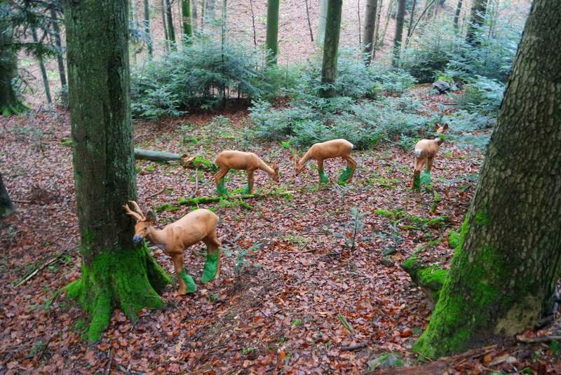 mehrere Scheiben und Tiere zwischen 15 und 45 Meter