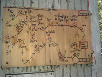 Der Parcour liegt in einem Tal am Hang. daher sehr schöne Bergauf- und Bergabschüsse. Landschaftlich ist es eher Wildnis als Wanderweg. Festes Schuhwerk dringend erforderlich. Das schöne ist, dass der Parcour ständig umgebaut wird und sozusagen lebt. Sehr abwechslungsreich durch die belassene Natur, auch eine Wasserratte kann geschossen werden. (Hier besteht allerdings die Gefahr, dass man ein Bad nehmen muss um seinen Pfeil wieder zu bekommen. (Wasser etwas mehr als Knietief).